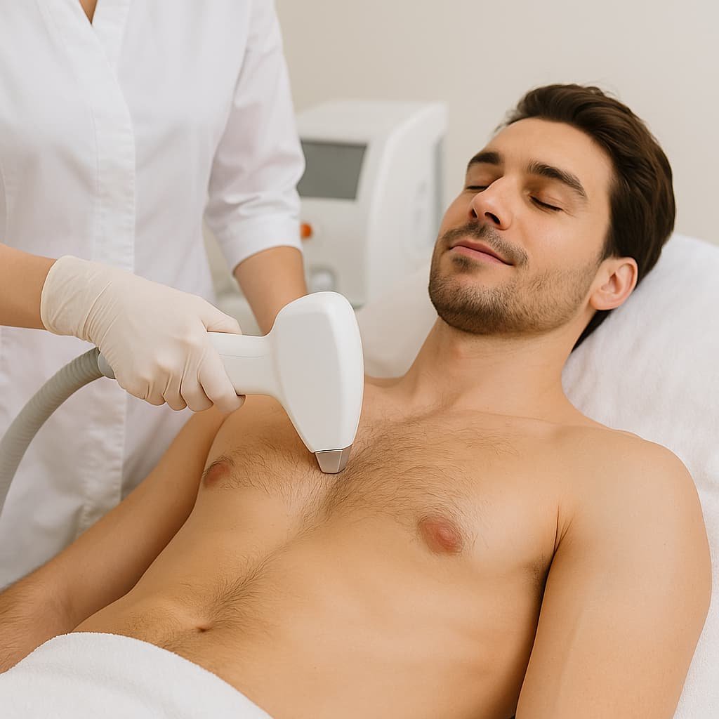 Eliminación del vello en pecho masculino o femenino con láser, logrando una piel más limpia y estética.
