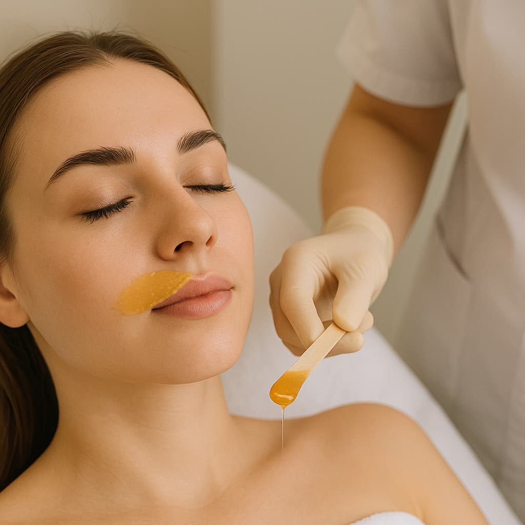 Depilación con cera en todo el rostro, eliminando vello fino y logrando un acabado uniforme y suave