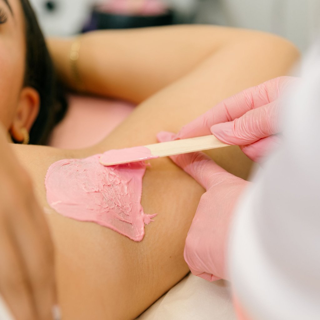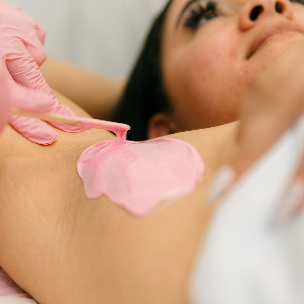 Eliminación del vello en axilas con cera, logrando suavidad inmediata y resultados duraderos.