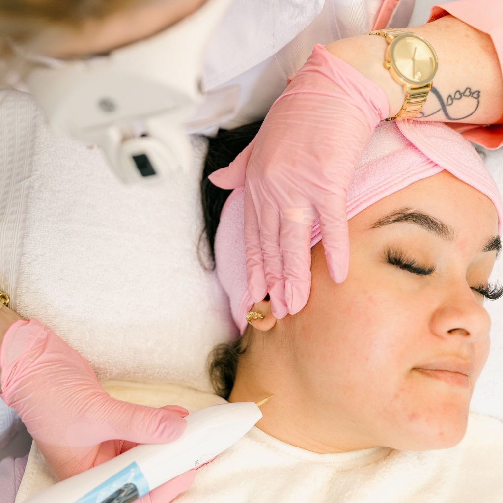 Microperforaciones que estimulan colágeno y elastina, reduciendo cicatrices, líneas finas y mejorando la firmeza de la piel